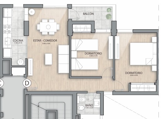 Departamento 2 dormitorios – Paseo del Molino – Sarmiento 2300