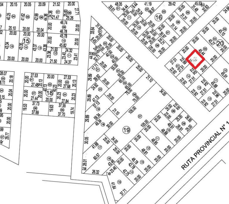 Posee 900 m2, con 20 metros de frente al Oeste por 45 metros de fondo.