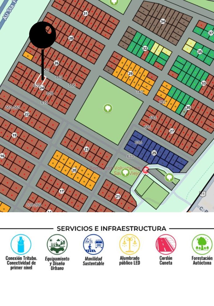 Santomás Pueblo Verde, Municipio de Santo Tomé, Departamento La Capital, Argentina DetallesTerreno en Los Domingos – Manzana 35/Lote 875 – Sauce Viejo
